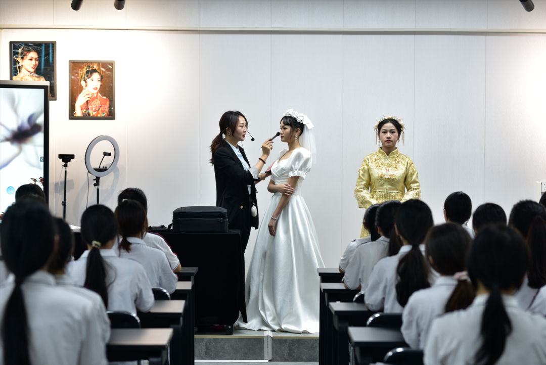 3 主干课程 美容基础、美体基础、化妆基础、化妆品营销、服务心理与礼仪、美容美发店创业实务、美容美发软件应用、护肤技术、美体技术、美甲护理、形象设计概论等。 ![]() ![]() 4 就业方向 可从事化妆师、美容美体师、广告影视媒体人物形象造型师、婚纱影楼化妆造型师、形象设计师、造型工作室管理、化妆品营销等职业或自主创业。