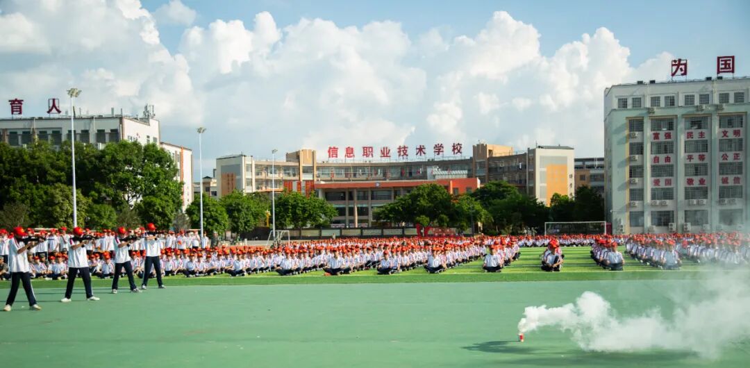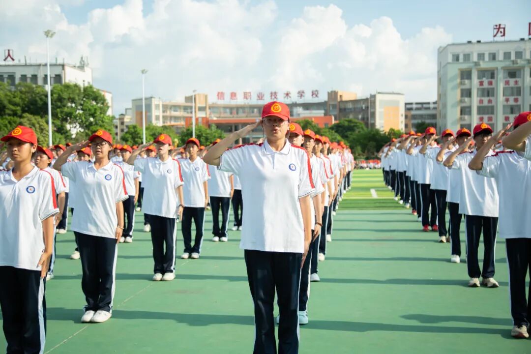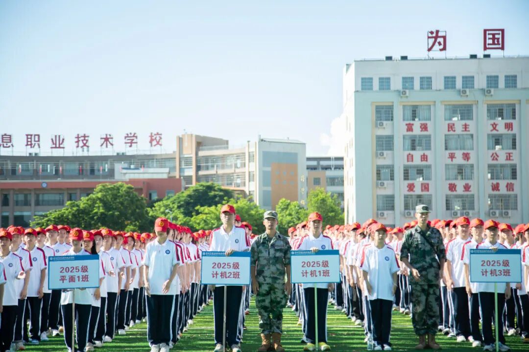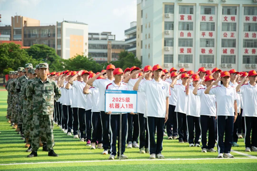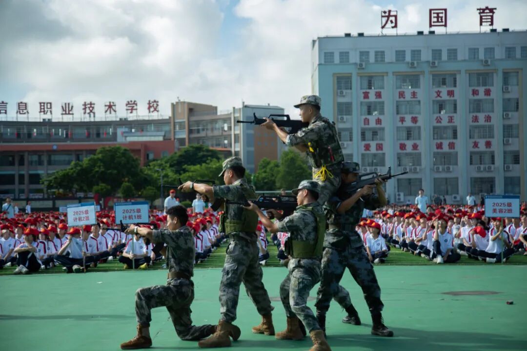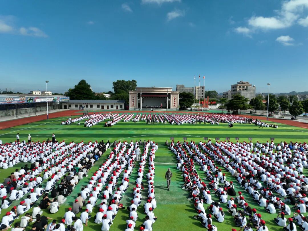 发表时间:2025-09-12 17:01 ![]() ![]() 2025年9月3日至6日,我校组织开展了2025级新生综合素质拓展训练。作为新生入学教育的重要环节,此次训练意在通过国防教育、体能训练以及团队协作,助力学生扣好中职生涯的“第一粒扣子”,以实际行动践行“请党放心,强国有我”的时代誓言。 ![]() ![]() ![]() 开营仪式: 庄严启程,昂扬开训 ![]() 9月3日上午,学校足球场隆重举行开营动员大会。校领导、素质拓展训练营全体教官、2025级全体班主任及全体新生共同参会。仪式在庄严的国歌声中正式开启。刘副校长作热情洋溢的动员讲话,强调拓展训练是锤炼意志、培养纪律、凝聚团队的重要课程,期望同学们以军人标准严格要求自身,弘扬抗战精神,践行青春誓言。学生代表黄永鸿发言,表达了全体新生严守纪律、刻苦训练的坚定决心。随后,教官们进行了精彩的演示,龙校长向总教官授予训练营旗,正式拉开了为期四天训练序幕。