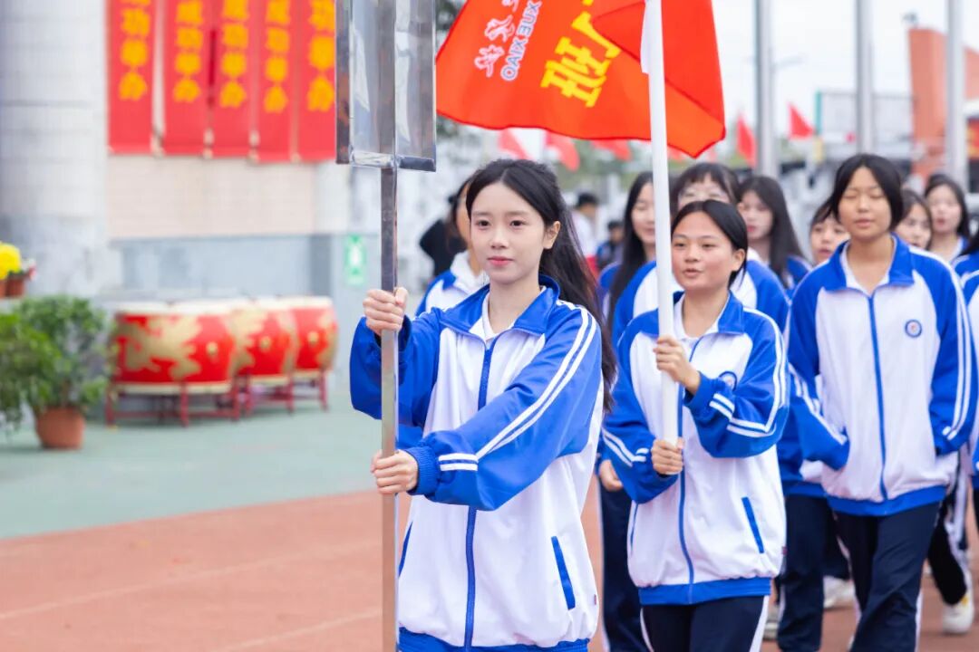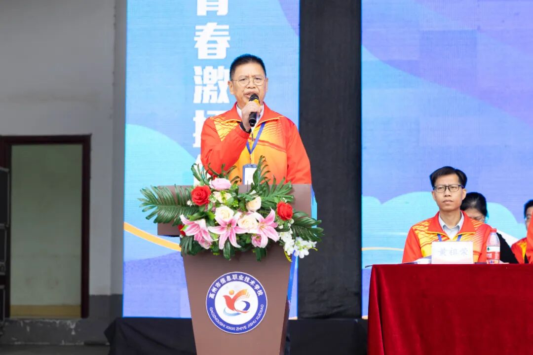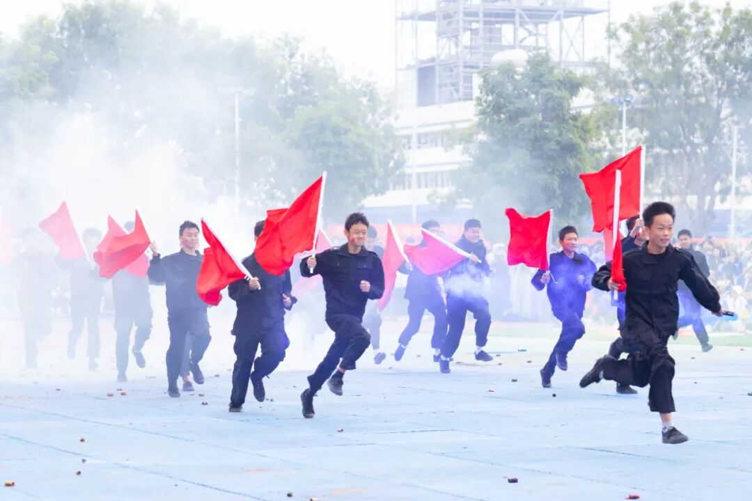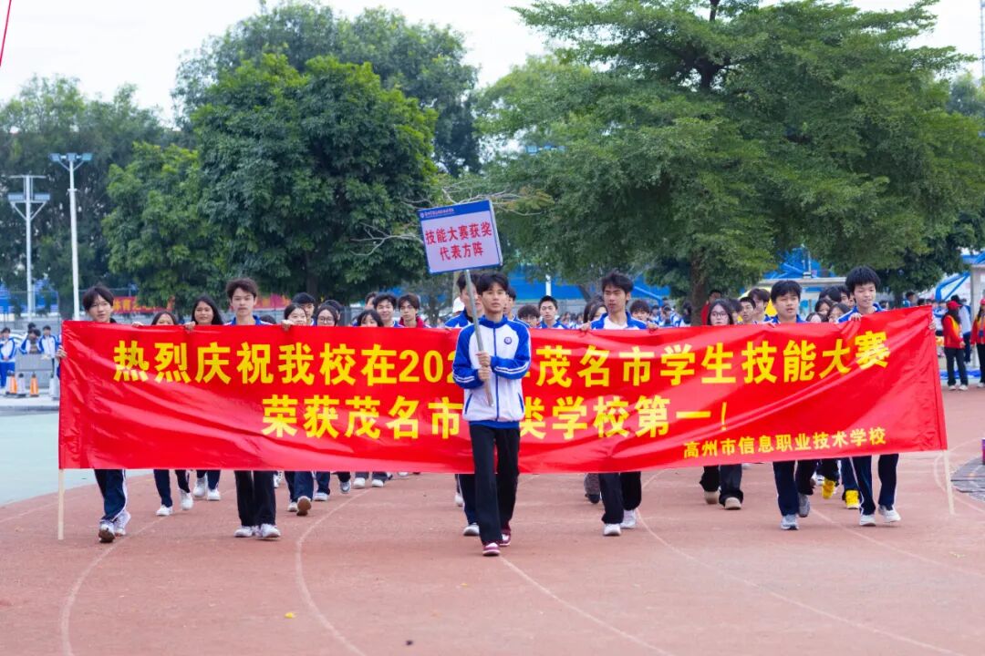 发表时间:2024-12-23 08:05 ![]() 11月20日下午,我校举办的以“匠心向党筑宏梦,青春激扬创辉煌”为主题的2024年体育艺术节圆满落幕。现在,就让我们一同回顾这一精彩盛事吧! ![]() 01 12月18日上午,2024年体育艺术节隆重开幕。学校党支部书记罗荫雄,党支部副书记、执行董事罗霄和执行校长曾文佳等领导以及全体师生出席了活动。 01执行校长曾文佳为开幕式致辞 ![]() ![]() 02执行董事罗霄宣布正式开幕 ![]() ![]() 03裁判员代表阮文豪老师宣誓 ![]() ![]() 04运动员代表容毅同学宣誓 ![]() ![]() 05总裁判长谢京俊老师宣布大会注意事项 ![]() ![]() 02 ![]() 综合方阵 ![]() ![]() 国旗护卫队 ![]() 彩旗方阵 ![]() 裁判员方阵 ![]() 社团方阵 国旗护卫队身姿挺拔,步伐坚定,护送着五星红旗进入会场。他们怀着赤诚炽热的心,用坚毅和方刚,演绎着青春最浓厚的底色。 彩旗方阵铿锵有力的步伐,踏出奋发向上的决心,手中鲜艳的彩旗更加熠熠生辉,彰显信息学子的意气风发。 裁判员方阵是运动场上的公正守护者,用专业丰富的体育知识储备,全心全意为运动健儿们保驾护航。 社团方阵迈着青春而自信的步伐,以饱满的热情和独特的魅力,展现了学子们的多元才华与蓬勃朝气。 最为耀眼的还属技能大赛获奖代表方阵,今年我校学生参加茂名市中职专业技能比赛斩获多项佳绩!荣获茂名市同类学校第一!