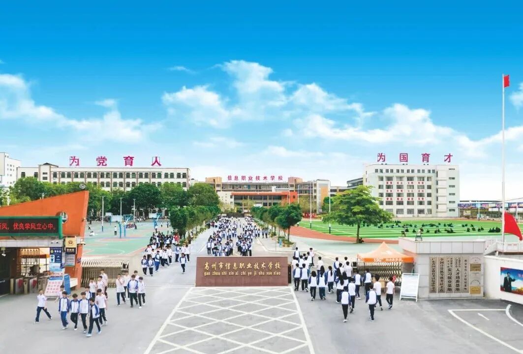 高州市信息职业技术学校创办于1996年,坐落于“广东四大文教之乡”高州市,是广东省重点中等职业学校。学校现有金山、高城两个现代化校区,校园绿树成荫,现代化教学楼、实训基地、图书馆等设施一应俱全,先后获评广东省首批“三全育人”典型学校、绿色学校、更高水平安全文明校园及全国青少年校园足球特色学校,获准设立广东省国家教育考试标准化考点、全国计算机等级证书考点、1+X证书考点、茂名市职业技能等级认定组织等,是集学历教育、职教高考、中高职贯通、技能培养于一体的复合型人才培养基地。